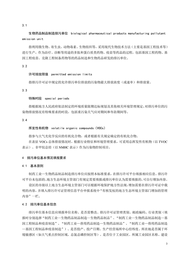 Technical specification for application and issuance of pollutant permit Pharmacy industry—Biological pharmaceutical products manufacturing