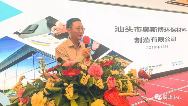 本次活動由中國水利企業(yè)協(xié)會脫鹽分會主辦,汕頭市奧斯博環(huán)保材料制造有限公司協(xié)辦,以“創(chuàng)新驅(qū)動·綠色發(fā)展”為主題,圍繞分會2019年工作匯報和2020年主要活動安排、《2018-2019海水淡化年度報告》發(fā)布、脫鹽膜制造技術(shù)創(chuàng)新與綠色發(fā)展等進行了深入的探討與交流,參會代表190多人。