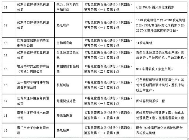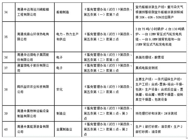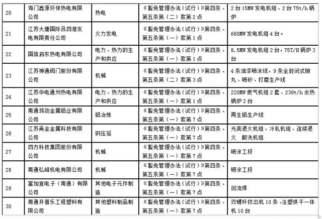 南通市2019-2020年秋冬季錯峰生產(chǎn)及重污染天氣應急管控停限產(chǎn)豁免名單