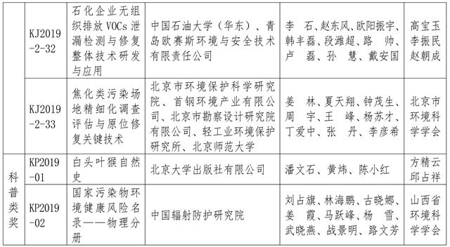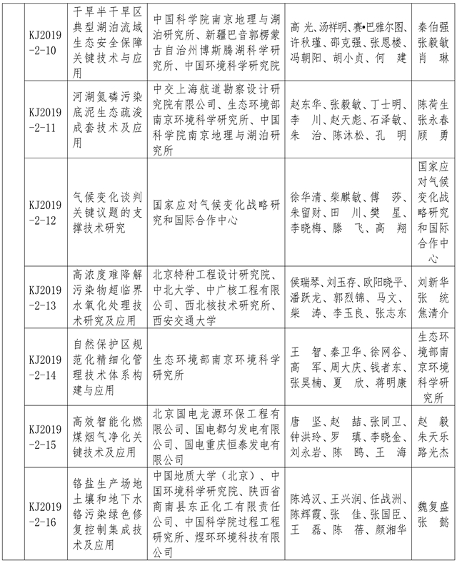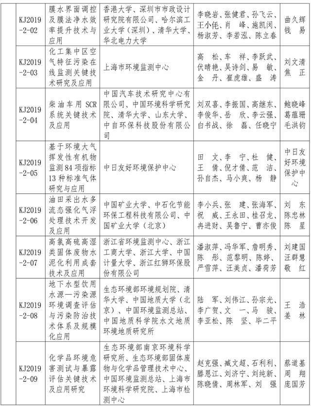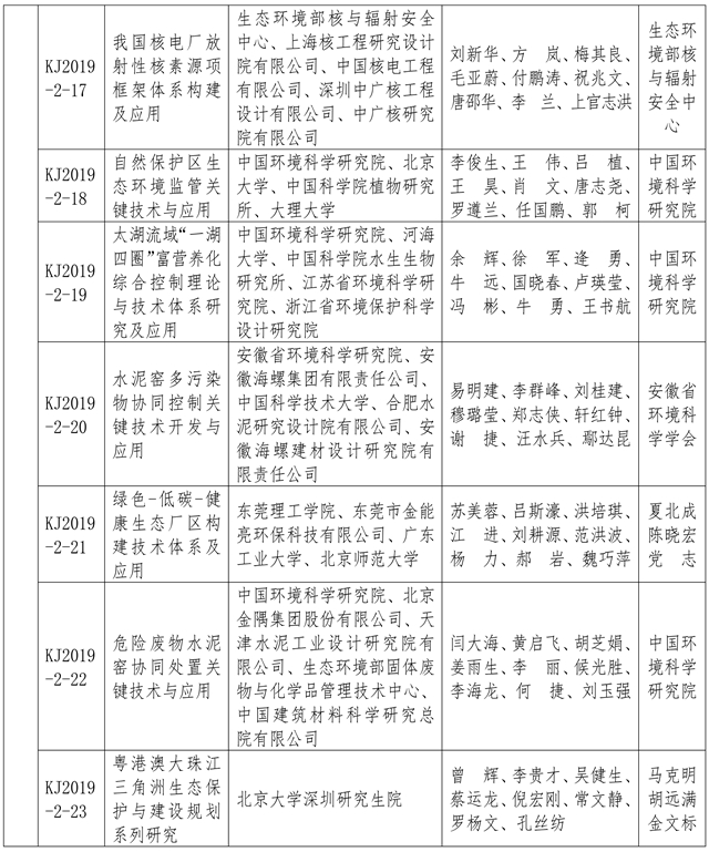附:2019年度環(huán)境保護科學技術(shù)獎獲獎項目名單