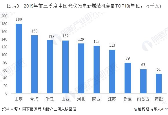 具體到各個省份來看,2019年前三季度,山東省新增裝機(jī)容量排名第一,達(dá)到180萬千瓦;青海和浙江緊隨其后,新增裝機(jī)容量分別為150萬千瓦和138萬千瓦。