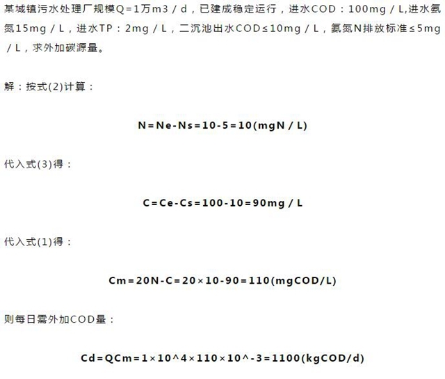 普通活性污泥法中CNP比100:5:1,在實(shí)際污水處理中TP往往是過量的,很多需要配合化學(xué)除磷達(dá)標(biāo),所以以TP計算的碳源往往會偏大,實(shí)際中以氨氮的量來計算碳源的投加量。