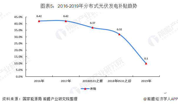 從2016年開(kāi)始,中國(guó)分布式光伏發(fā)電補(bǔ)貼開(kāi)始逐步下降,2018年5月31日之后,關(guān)于分布式光伏發(fā)電的補(bǔ)貼更加是斷崖式下跌,截止到2019年,中國(guó)分布式光伏發(fā)電的補(bǔ)貼已經(jīng)下降到0.1元/度。未來(lái),隨著棄光率逐步下降,中國(guó)光伏發(fā)電平價(jià)上網(wǎng)逐步實(shí)施,中國(guó)的光伏發(fā)電補(bǔ)貼還有下降的空間。