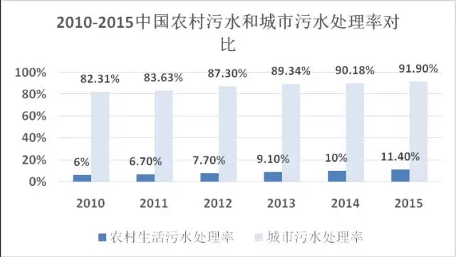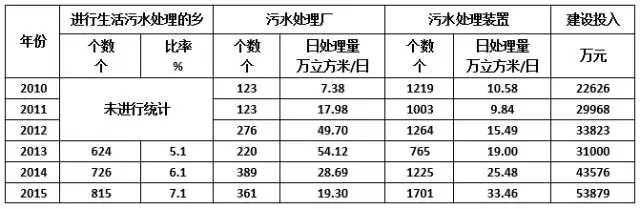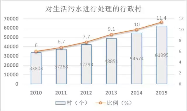 至2015年,全國仍有近90%的行政村未進(jìn)行污水處理設(shè)施建設(shè),市場空間極大!