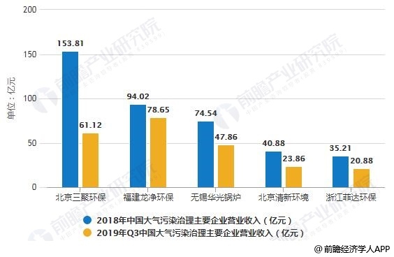 2018-2019年Q3中國(guó)大氣污染治理主要企業(yè)營(yíng)業(yè)收入統(tǒng)計(jì)情況