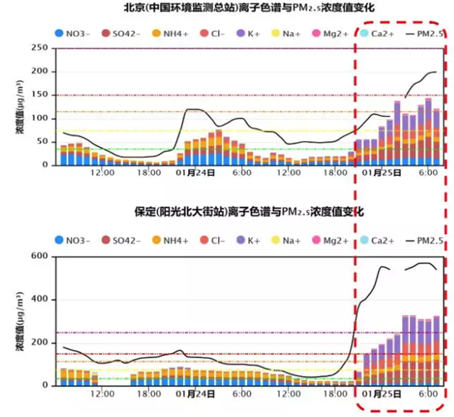 圖5 2020年除夕至初一北京、保定市離子色譜濃度圖