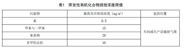 排氣筒揮發(fā)性有機化合物排放濃度限值應(yīng)符合表1規(guī)定。