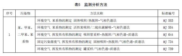 揮發(fā)性有機化合物濃度的測定應(yīng)采用表5所列的方法標準或國家主管部門認定的等效方法。