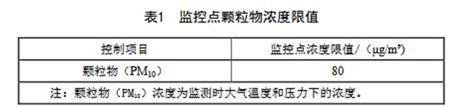 4.1自本標準實施之日起,所有施工場地監(jiān)控點顆粒物(PM10)濃度限值按表1的要求執(zhí)行。