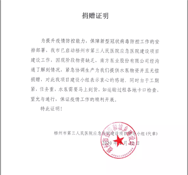 2020年春節(jié)前后爆發(fā)的新型冠狀病毒肺炎疫情截止到目前,全國確診人數(shù)已至數(shù)萬人,全國多個城市面臨著物資缺乏,緊急施工的嚴峻挑戰(zhàn)。為提升疫情防控能力,保障新型冠狀病毒防控工作的安排部署,加快湖北省婦幼保健院(光谷分院)施工建設(shè),提高抗擊新型冠狀病毒肺炎疫情的能力,南方泵業(yè)股份有限公司相關(guān)工作人員積極參與到醫(yī)院的施工與建設(shè)。由于現(xiàn)處特殊時期,找不到物流公司運送,特將水泵和供水設(shè)備專車運往疫情災(zāi)區(qū),為加快醫(yī)院建設(shè)作出貢獻。