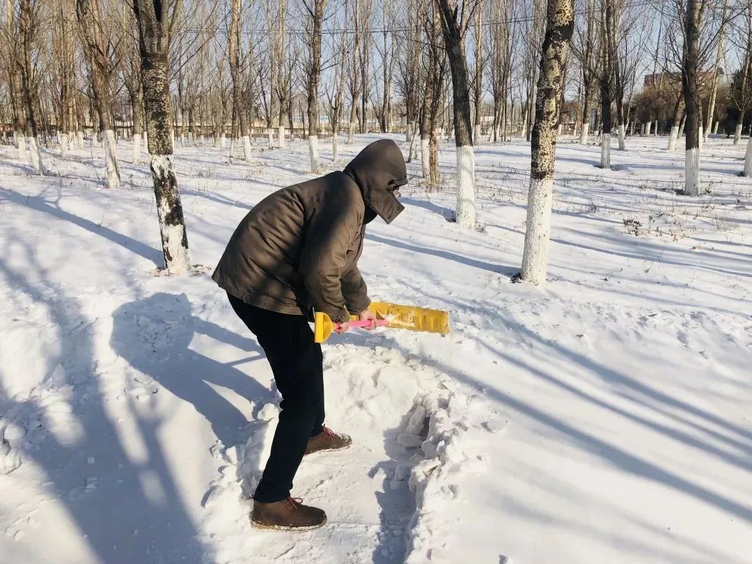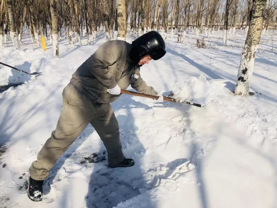 “一點(diǎn)不覺得冷,除一會(huì)雪就出汗,衣服都黏在身上了,所以一刻都不能停,否則要感冒了?!绷阆露鹊奶鞖?,他們或是只著單衣,或是汗?jié)窳嗣薹?,單薄的背影真的讓人肅然起敬!