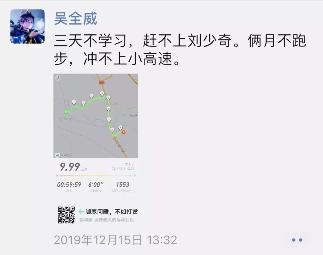 吳全威平時(shí)最大的愛好便是跑步,時(shí)常能在朋友圈看到他跑步的身影,偶爾還會(huì)發(fā)一些參加馬拉松比賽的照片。他說,一定要堅(jiān)持馬拉松精神去工作,不斷的超越自我,永不放棄。