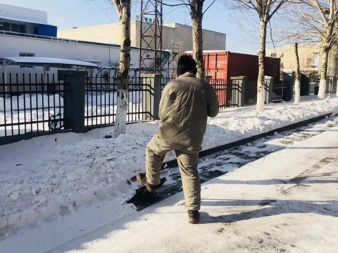 近日,沈陽迎來大暴雪,整個(gè)廠區(qū)覆蓋在皚皚白雪中。從清晨到晌午,再到傍晚,他們除了吃飯就是在清除積雪。作為安環(huán)專員,吳全威表示一定要嚴(yán)把道路“安全關(guān)”,保證收運(yùn)車能平穩(wěn)安全地駛?cè)霃S區(qū)。