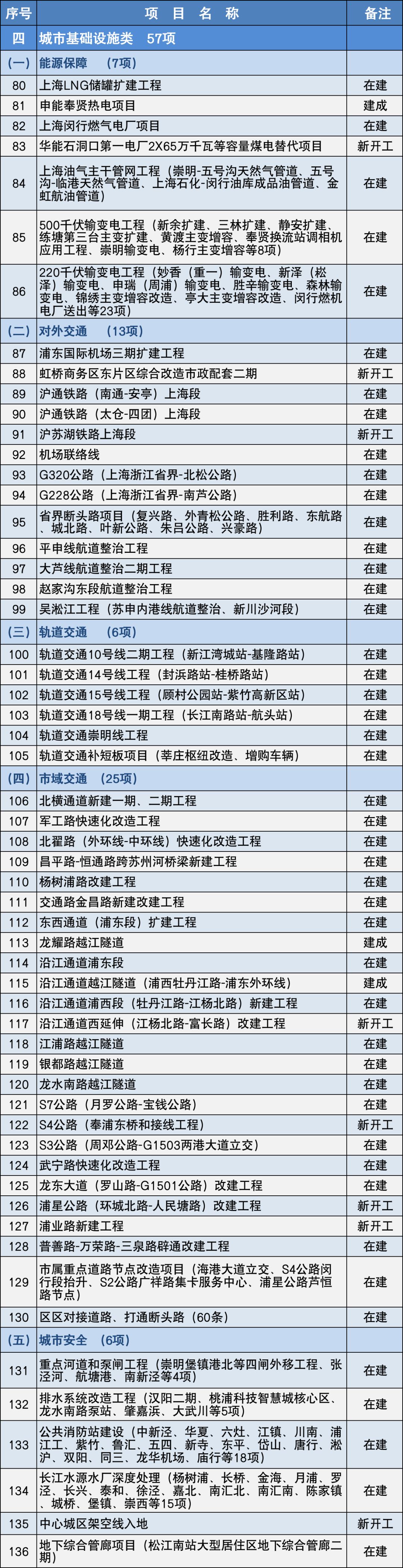 城市基礎(chǔ)設(shè)施類(57項(xiàng))