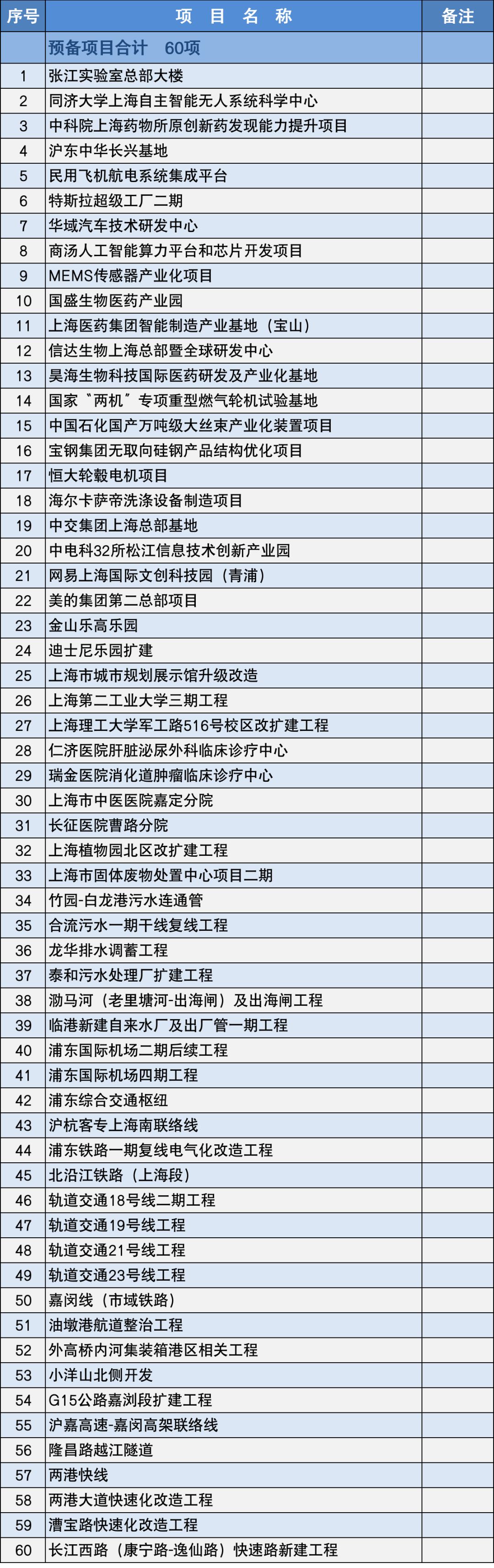 預(yù)備項(xiàng)目(60項(xiàng))
