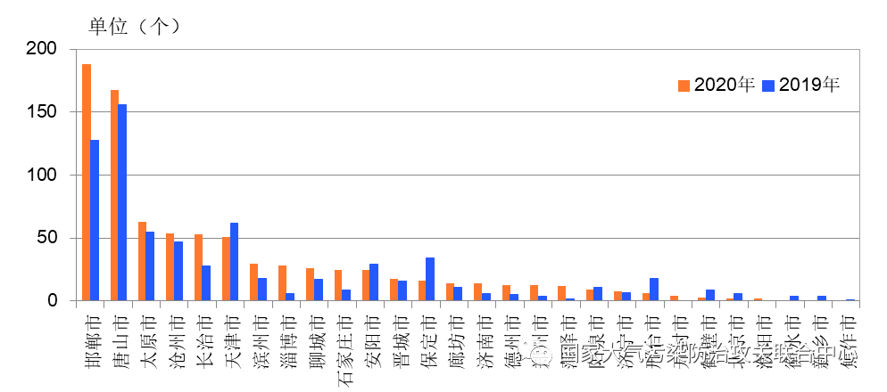 從工業(yè)行業(yè)上看,主要是鋼鐵、建材、電廠等企業(yè)密集分布的區(qū)域。今年春節(jié)以來“2+26”城市的工業(yè)熱高值區(qū)數(shù)量為848個,同比增加22.4%;邯鄲市工業(yè)熱高值區(qū)數(shù)量最多(188個),唐山市次之(168個),其次是太原、滄州、長治、天津等市(63-51個),其余城市少于50個(見圖2)。這說明,今年春節(jié)以來“2+26”城市中部分城市工業(yè)活動水平超去年同期。