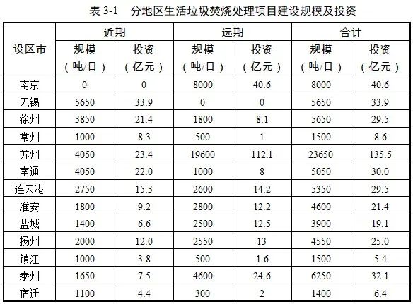 《江蘇垃圾焚燒規(guī)劃》中,江蘇省各地規(guī)劃項(xiàng)目更加一目了然。