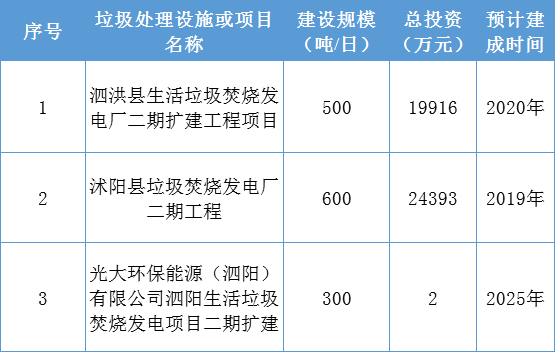 宿遷市共規(guī)劃項(xiàng)目3個(gè),總投資約6.3億元,新增生活垃圾日處理規(guī)模1400噸。詳情如下: