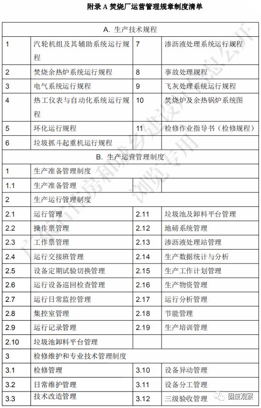 4.3.1 新建、擴(kuò)建焚燒廠應(yīng)建立生產(chǎn)管理規(guī)章制度,可參考附錄的制度清單編寫。