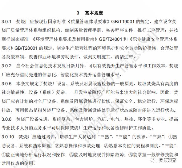3.0.1 焚燒廠運(yùn)營管理應(yīng)推行《質(zhì)量管理體系》GB/T 19001、《職業(yè)健康安全管理體系》 GB/T 28001 和《環(huán)境管理體系》GB/T 24001。