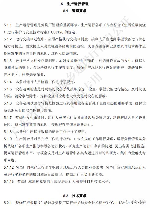 5.1.2 運(yùn)行交接班是焚燒廠連續(xù)生產(chǎn)過程中的一個(gè)重要環(huán)節(jié),應(yīng)執(zhí)行交接班管理制度。