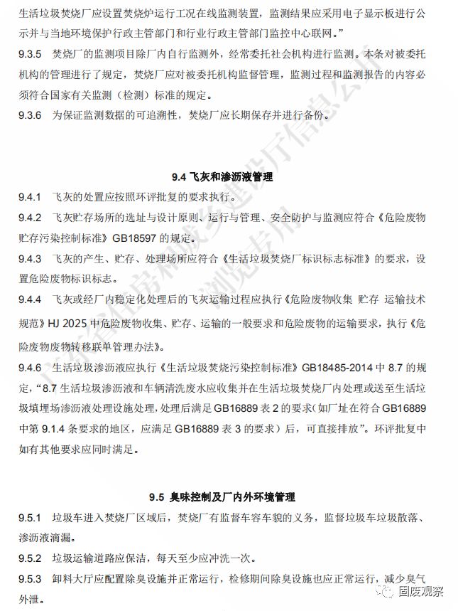 9.3.2 政府有關(guān)部門、機(jī)構(gòu)開展的監(jiān)督性監(jiān)測,焚燒廠應(yīng)做好配合工作。