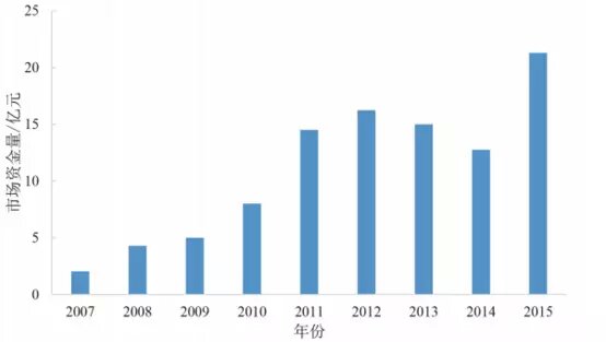 根據(jù)江蘇(宜興)環(huán)保產(chǎn)業(yè)技術(shù)研究院 - 土盟數(shù)據(jù)庫和《2015 中國土壤修復(fù)發(fā)展白皮書》的不完全統(tǒng)計(jì),從 2007 年到 2015 年全國土壤修復(fù)合同簽約額從 2.05 億元上升到 21.28億元,資金累計(jì)總量約為 99 億元,如圖 5-24 所示,市場(chǎng)總體發(fā)展穩(wěn)定?!笆濉逼陂g市場(chǎng)發(fā)展較為迅速,呈“V”字形上升,期間土壤修復(fù)資金累積量約為 80 億元。