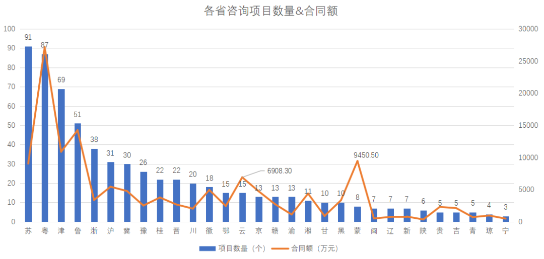 (1)生態(tài)環(huán)境部門,主導了大量的咨詢項目(2019年占比42.45%),在處于摸清底數(shù)的行業(yè)初期,這一趨勢還會延續(xù)下去。