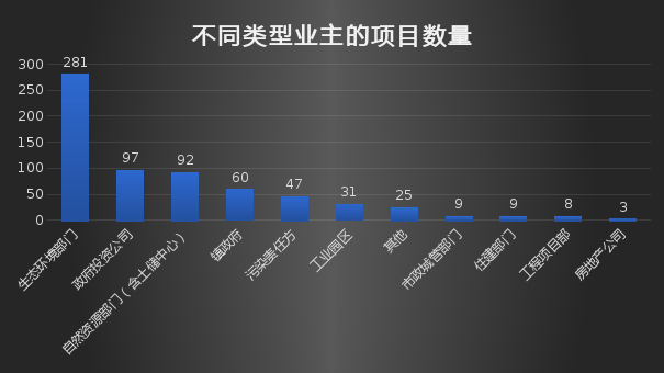 (2)政府投資公司,產(chǎn)生了第二多的項目,業(yè)務(wù)模式大多是作為政府融資平臺牽頭進行地塊開發(fā),土地流轉(zhuǎn)資金支持修復工作。