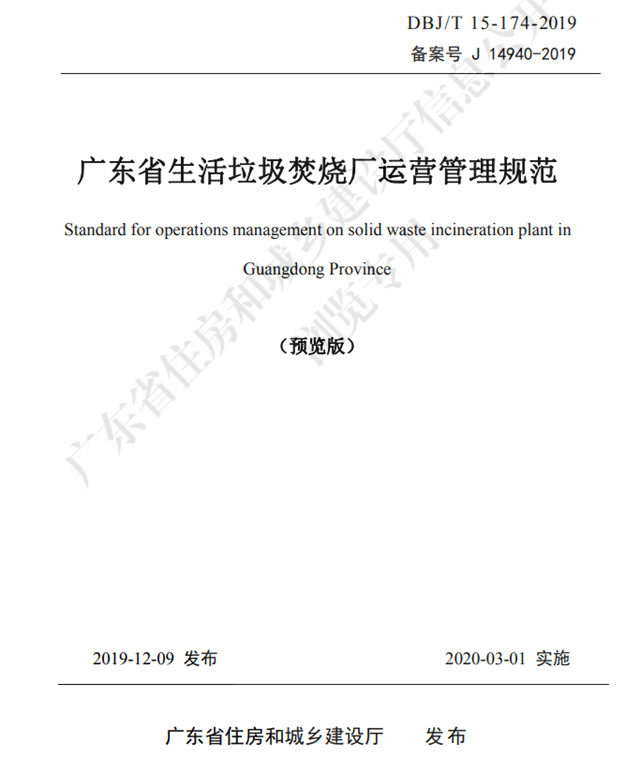 經(jīng)組織專家委員會(huì)審查,現(xiàn)批準(zhǔn)《廣東省生活垃圾焚燒廠運(yùn)營(yíng)管理規(guī)范》為廣東省地方標(biāo)準(zhǔn),編號(hào)為DBJ/T 15-174-2019。本標(biāo)準(zhǔn)自2020年3月1日起實(shí)施。