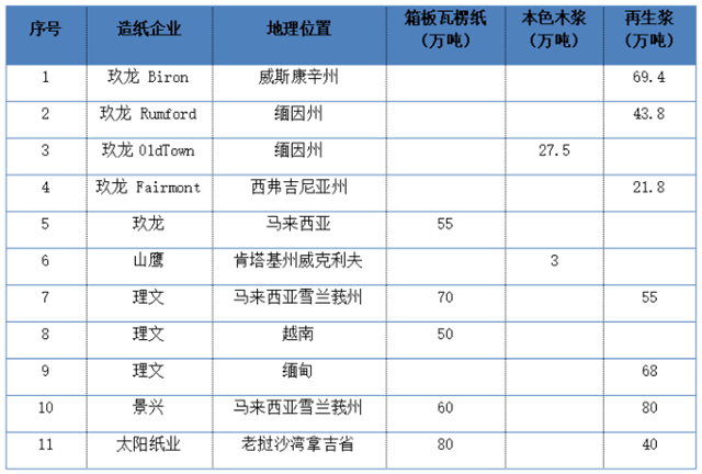 圖3:國內(nèi)主要紙企海外再生漿產(chǎn)能分布