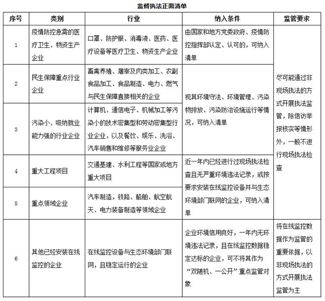 免除部分企業(yè)現(xiàn)場執(zhí)法檢查。對與疫情防控物資生產(chǎn)和民生保障密切相關(guān)的,污染排放量小、吸納就業(yè)能力強的,涉及重大工程和重點領(lǐng)域的管理規(guī)范、環(huán)境績效水平高的企業(yè),不進行現(xiàn)場執(zhí)法檢查。