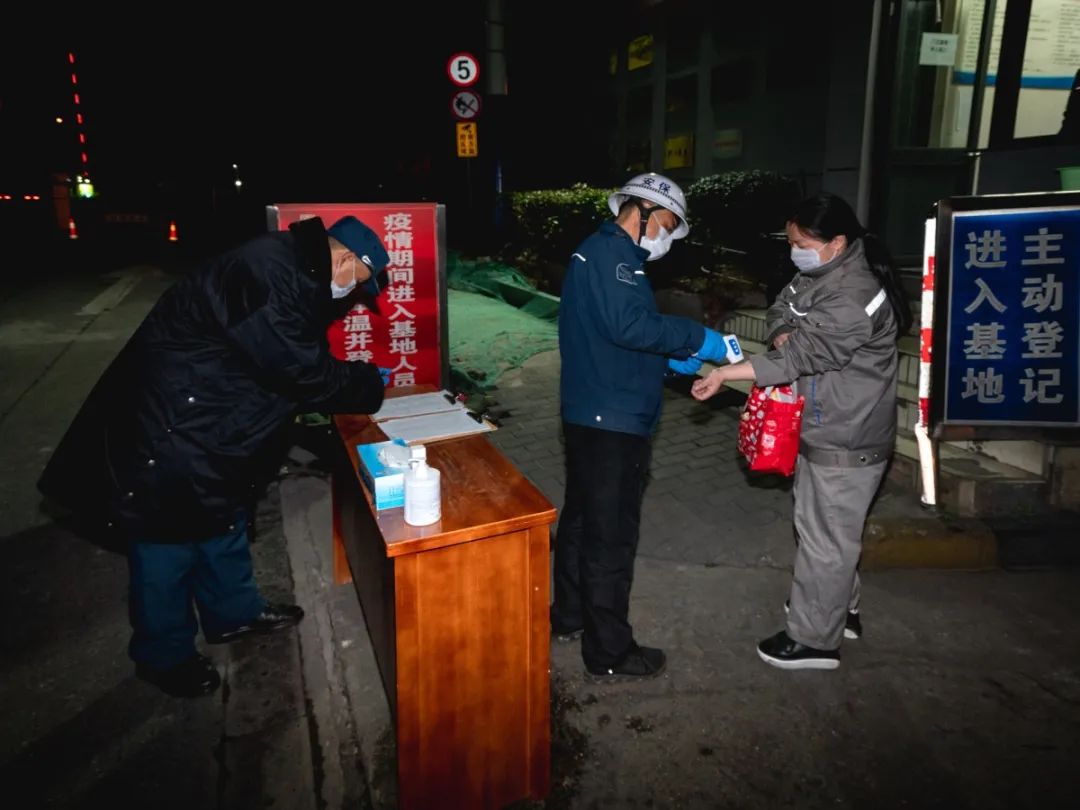 ▲這里是城投環(huán)境虎林路生活垃圾中轉(zhuǎn)碼頭,早上3點職工們已開始上班。門口保安對進碼頭上班的職工嚴格地測量體溫,做好登記。