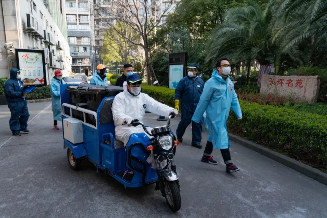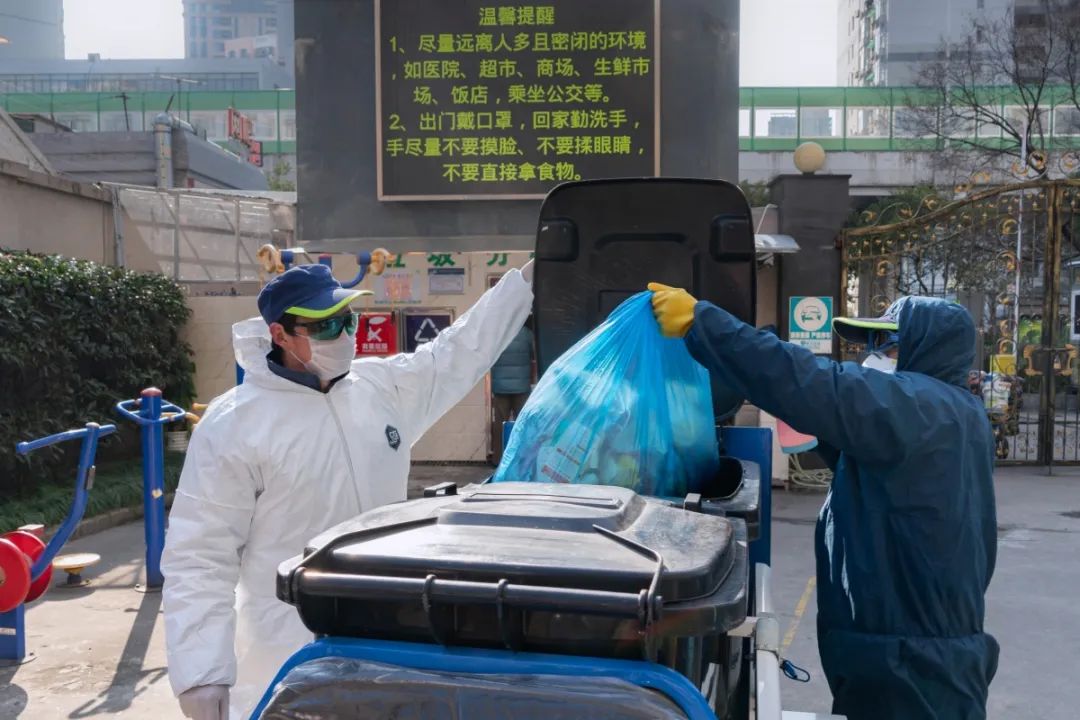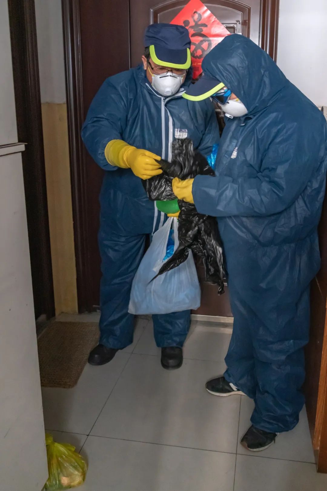 環(huán)衛(wèi)工人們除了一如既往做好日常的掃馬路、運垃圾、保潔廁所以外,他們還承擔了一項艱巨的任務,那就是針對重點國家、地區(qū)來滬須在家隔離14天的人員,每天上門收集他們產(chǎn)生的特殊生活垃圾,并做好集中、消毒、中轉(zhuǎn)、送運處置等工作。最后,筆者跟隨黃浦欣望環(huán)衛(wèi)公司的環(huán)衛(wèi)工人,記錄了他們收集這些特殊垃圾時的工作畫面。