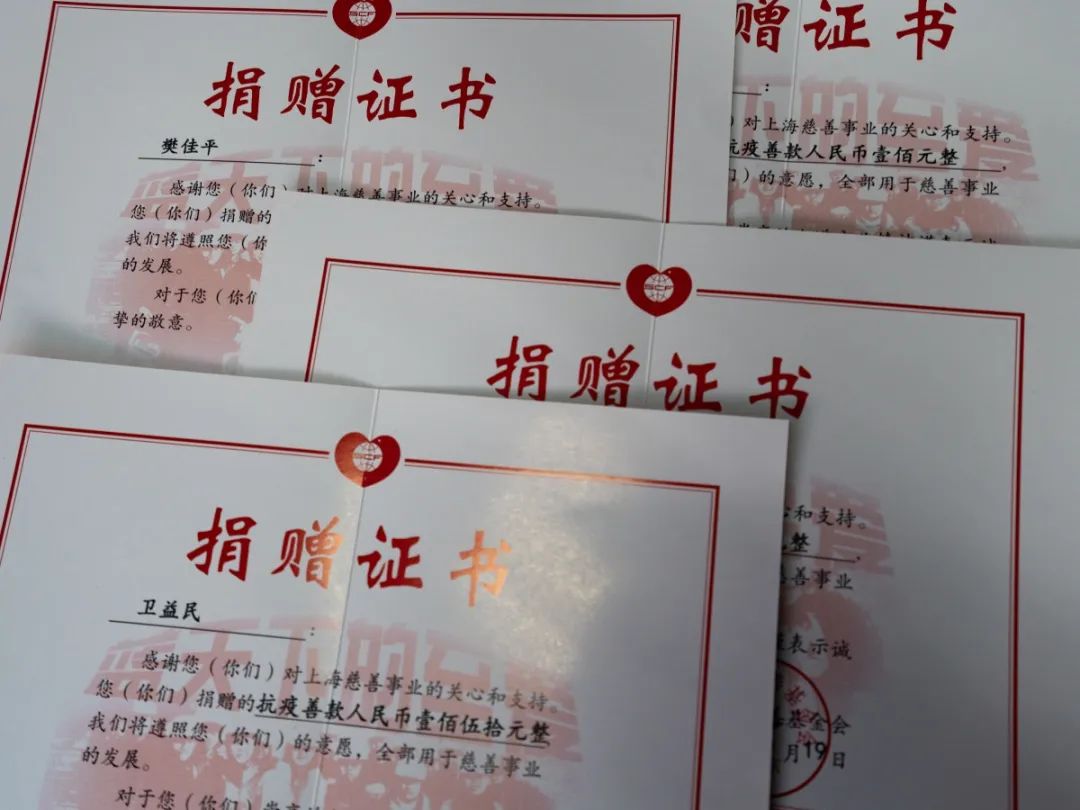 ▲疫情當頭,他們既堅守崗位,也不忘受害的武漢人民,紛紛捐獻愛心。這是老港基地職工的捐款證書。