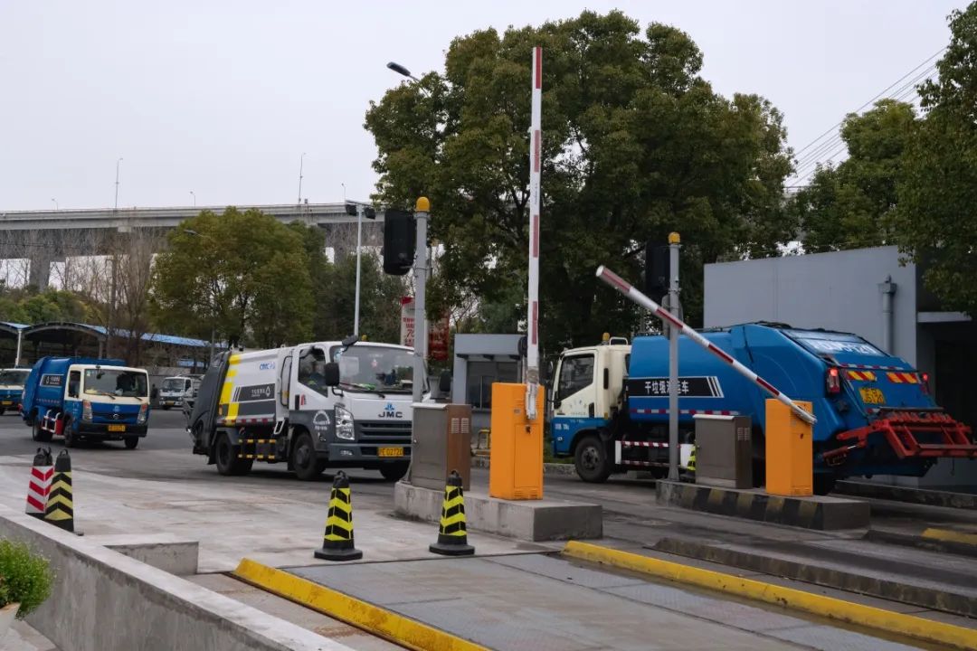 ▲筆者來到位于徐浦大橋下的城投環(huán)境徐浦碼頭。這里也呈現(xiàn)一片繁忙景象,來自附近區(qū)的生活垃圾運輸車輛進進出出,川流不息。