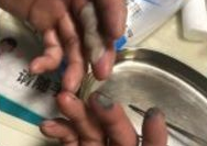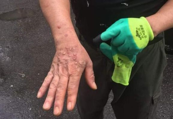 因分揀垃圾感染病毒,雙手滿是皰疹,奇癢難耐。