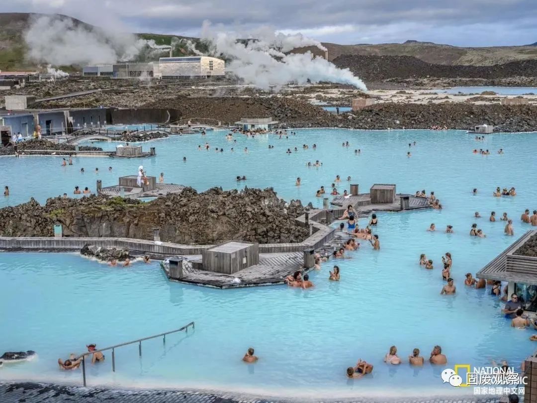 在冰島藍湖,地熱水源通過斯瓦森基發(fā)電廠產(chǎn)生電力后不再滾燙,被用來建立熱門旅游景點。水中高濃度的硅防止其下滲進熔巖原,并為湖水染上迷人的藍色。