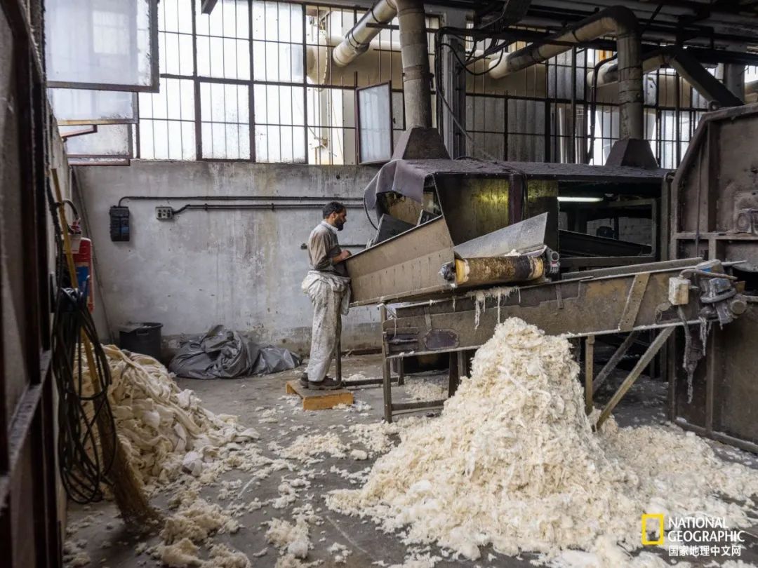 在意大利普拉托的工廠中,羊毛和廢棄衣服的山脈按顏色分類,清洗,加工后用于制造新衣服。