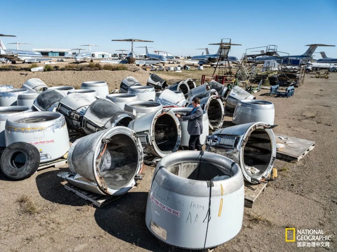 布倫特·韋伯在羅斯韋爾的卡武航空航天(Cavu Aerospace)檢查已退役的美國航空麥克唐納·道格拉斯MD-80s的發(fā)動機零件。該公司拆卸飛機進行回收和再制造。