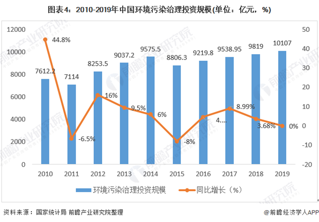 根據國家統(tǒng)計局《中國統(tǒng)計年鑒2019》發(fā)布的數據顯示,近年來我國環(huán)境污染治理投資力度持續(xù)加大。2017年,我國環(huán)境污染治理投資總額達9538.95億元,城市環(huán)境基礎設施建設投資總額達6085.75億元,工業(yè)污染源治理投資總額達681.53億元。2012-2017年,我國環(huán)境污染治理投資總額的復合增長率為2.94%,城市環(huán)境基礎設施建設投資總額的復合增長率為3.75%,工業(yè)污染源治理投資額的復合增長率為6.37%,前瞻推算,2018年,我國環(huán)境污染治理投資總額將超過9800億元,城市環(huán)境基礎設施建設投資額將超過6300億元,工業(yè)污染源治理投資額將超過700億元;2019年,預計環(huán)境污染治理投資額將突破1萬億元,城市環(huán)境基礎設施建設投資額將突破6500億元,工業(yè)污染源治理投資額約771億元。