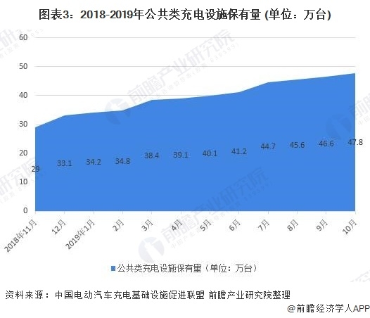 電動(dòng)汽車普及的關(guān)鍵是便利的充電基礎(chǔ)設(shè)施,隨著新能源汽車地方購置補(bǔ)貼使得新能源汽車產(chǎn)量增長略有成效后,出于長遠(yuǎn)發(fā)展的考慮,新能源汽車地方購置補(bǔ)貼資金逐漸轉(zhuǎn)為支持充電基礎(chǔ)設(shè)施建設(shè)和運(yùn)營等環(huán)節(jié)。在電動(dòng)化、智能化、共享化和網(wǎng)聯(lián)化的大趨勢(shì)下,多家汽車制造商表示將重點(diǎn)放在研發(fā)電動(dòng)汽車上,但是市場中純電動(dòng)汽車的推廣仍然存在較大的瓶頸,電動(dòng)汽車的普及率仍然較低,影響產(chǎn)量增速,主要原因是車主對(duì)純電動(dòng)汽車?yán)m(xù)航的憂慮,所以促進(jìn)電動(dòng)汽車的發(fā)展一方面除了提升電池的性能之外,還包括提供便利快速的充電設(shè)施。近年來我國公共類充電設(shè)施保有量也逐漸增加。2018-2019年公共類充電設(shè)施保有量逐漸增加,截止2019年10月底,公共類充電設(shè)施保有量達(dá)到47.8萬臺(tái),較2018年底增加4.7萬臺(tái)。