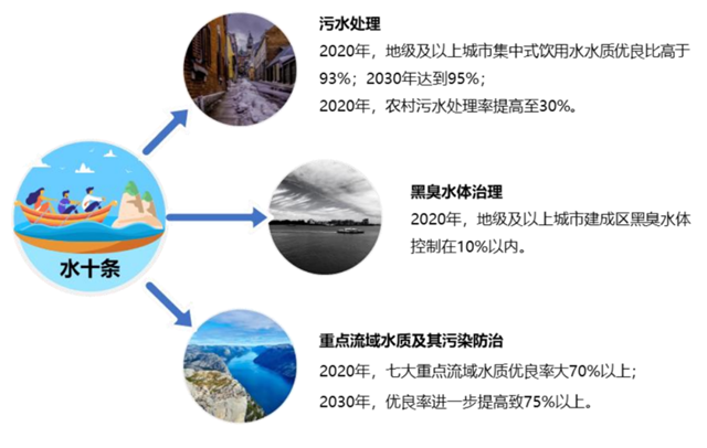 《水污染防治行動(dòng)計(jì)劃 》,又稱“水十條”,是我國(guó)水環(huán)境治理政策建設(shè)的里程碑,標(biāo)志著我國(guó)水環(huán)境治理開始從過去的污水治理、截污管網(wǎng)等末端治理模式,延伸至源頭控制、過程阻斷以及末端治理全過程協(xié)同的新模式,涉及污水治理、流域修復(fù)、城市排污管網(wǎng)建設(shè)、以及景觀建設(shè)等眾多行業(yè)領(lǐng)域。