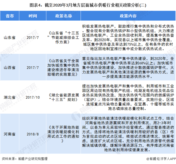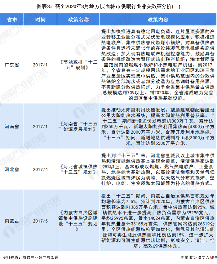 截至2020年3月各省市城市供暖行業(yè)政策匯總