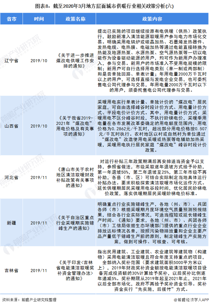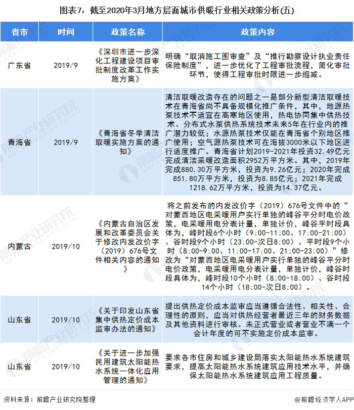 除了國家層面出臺的政策外,各省市地區(qū)根據(jù)當?shù)氐奶攸c,出臺供暖政策鼓勵清潔供暖。2019年11月,唐山發(fā)布了《關(guān)于農(nóng)村地區(qū)清潔取暖財政補貼政策有關(guān)事項的通知》,對唐山市農(nóng)村地區(qū)清潔取暖進行財政補貼;2019年10月,山東省住房和城鄉(xiāng)建設(shè)廳發(fā)布《關(guān)于進一步加強民用建筑太陽能熱水系統(tǒng)一體化應(yīng)用管理的通知》,進一步加強民用建筑太陽能熱水系統(tǒng)一體化應(yīng)用管理,促進節(jié)能減排。