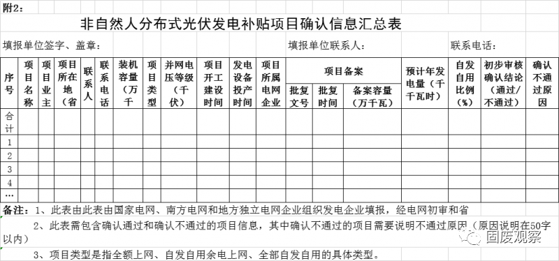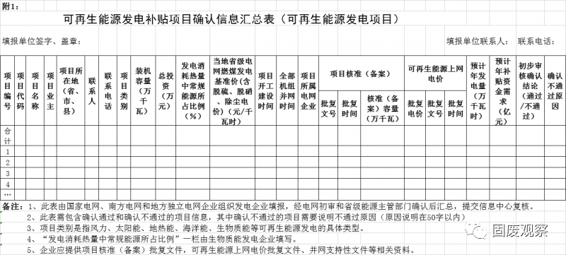 2、可再生能源發(fā)電補貼項目確認(rèn)信息匯總表