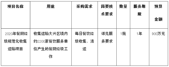 原標題:北京固廢物流有限公司以900萬中標大興區(qū)2020年餐廚垃圾規(guī)范化收集運輸項目
