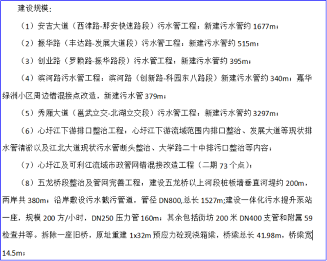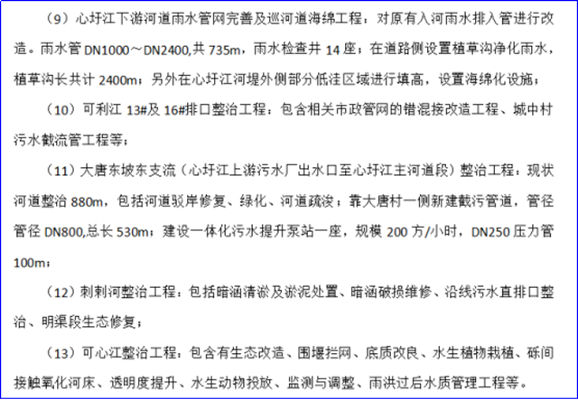 據(jù)了解,本項(xiàng)目已由南寧市發(fā)展和改革委員會(huì)批準(zhǔn)建設(shè),項(xiàng)目出資比例為100%,建設(shè)規(guī)模包含安吉大道、振華路、創(chuàng)業(yè)路、濱河路、秀廂大道等多個(gè)路段的污水管工程,還包括心圩江下游排口整治工程、心圩江及可利江流域市政管網(wǎng)錯(cuò)混接改造工程、五龍橋段整治及管網(wǎng)完善工程、心圩江下游河道雨水管網(wǎng)完善及巡河道海綿工程、可利江13#及16#排口整治工程、大唐東坡東支流(心圩江上游污水廠出水口至心圩江主河道段)整治工程、刺剌河整治工程和可心江整治工程,共13個(gè)工程項(xiàng)目。