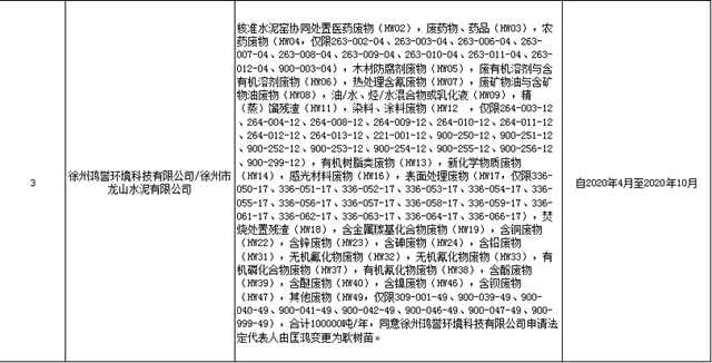 江蘇省生態(tài)環(huán)境廳擬頒發(fā)危險(xiǎn)廢物經(jīng)營許可證的公示(2020年4月8日)