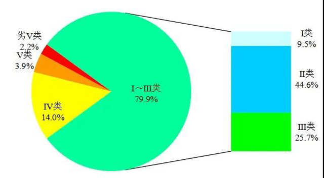 圖2 2020年1-3月全國(guó)地表水水質(zhì)類別比例